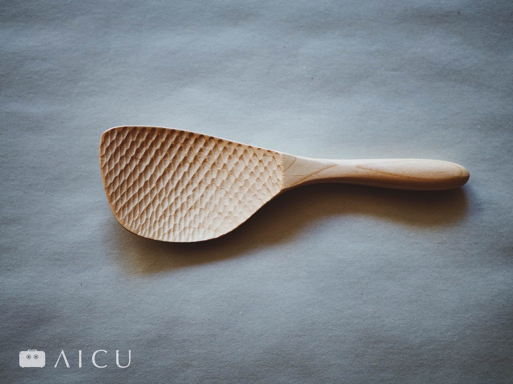 我們比較過不同形狀的飯杓,並如我們一貫喜歡的材質均是以木頭為主,現在推薦給同學你這隻楓木做的十分輕巧,切口特別又上有挖削造型的好飯杓。